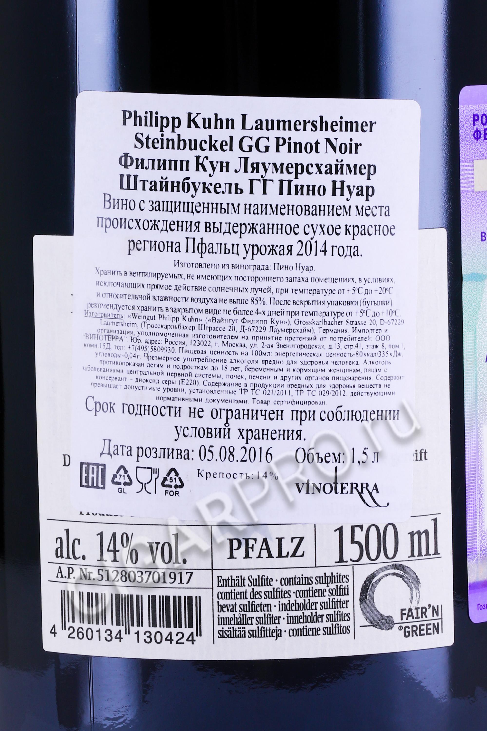 Philipp Kuhn Laumersheimer Steinbuckel GG Pinot Noir Вино Филипп Кун Ляумерсхаймер Штайнбукель ГГ Пино Нуар 1.5л